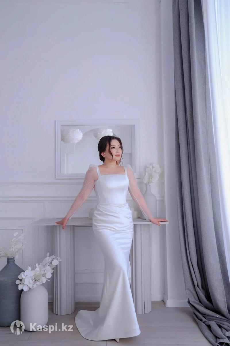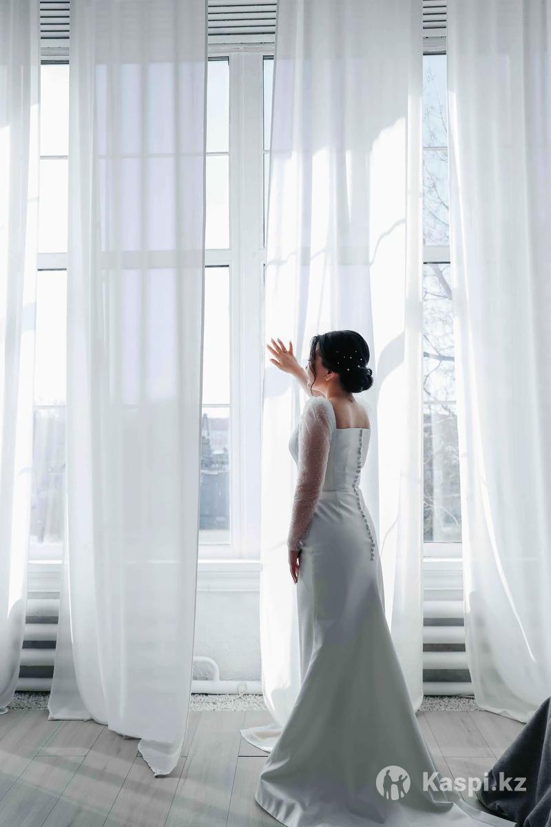 Продам свадебное платье, европейского стиля. С удобным шлейфом. Цвет айвори. размер 42-44. На корсете. Очень удобное. После Хим чистки. Цена 90.000 торг. Район Байтурсынова-Жумабаева.Торг. Имеется каспи РЕД