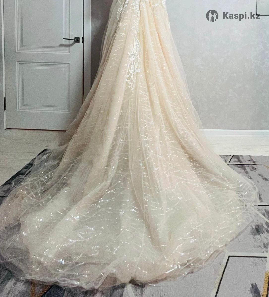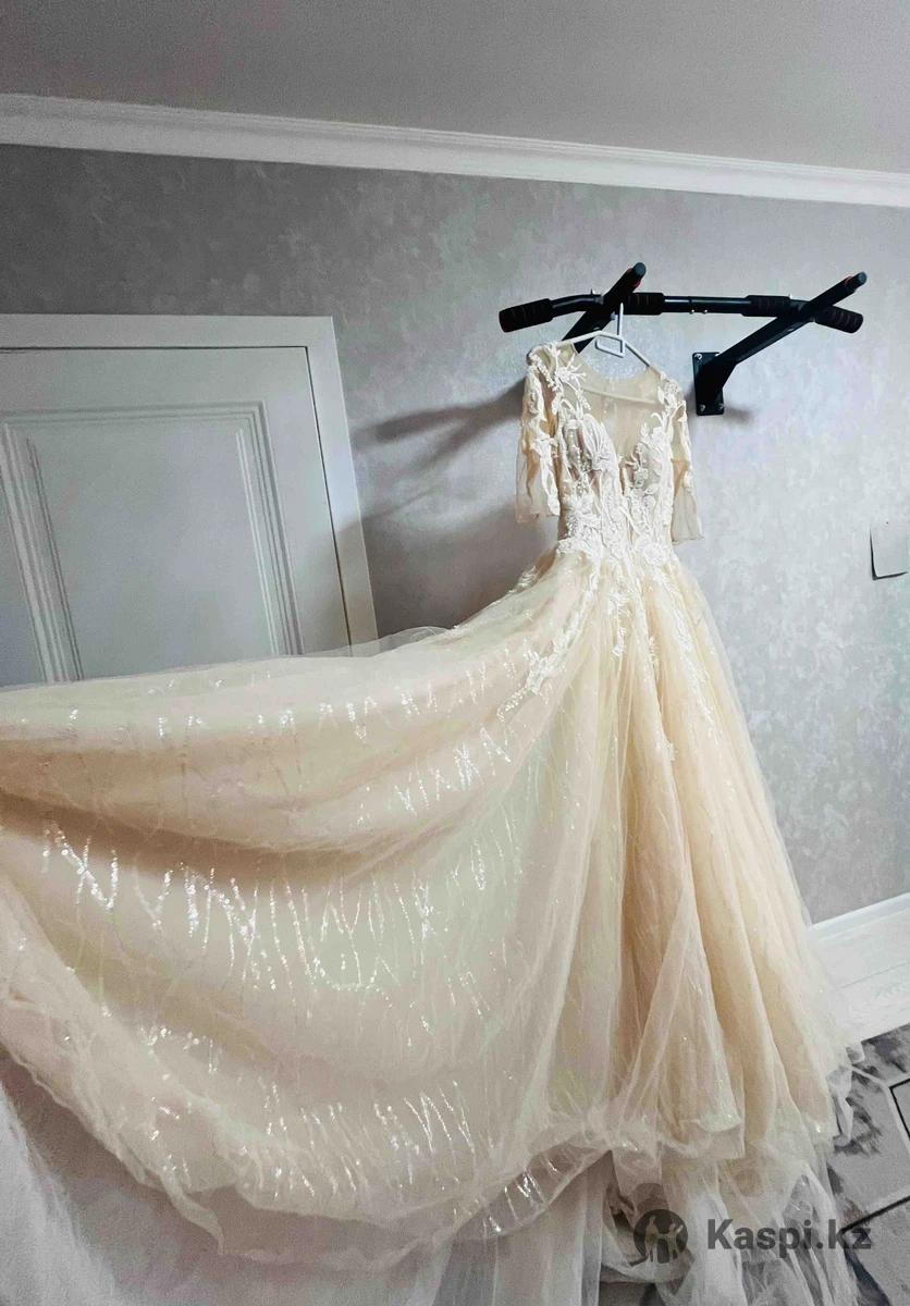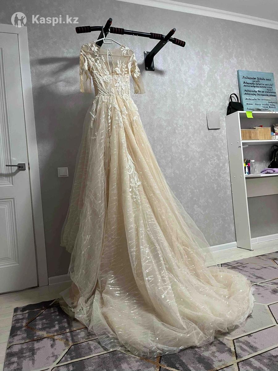 Продаю свадебное платье в отличном состоянии. Покупала в Москве за 100 000 рублей. Надевалось всего 1 раз на свадьбу. После профессиональной химчистки — полностью чистое и готово для нового торжества. Платье очень нежное и эффектное: пышная юбка с красивым шлейфом, легкая блестящая вышивка, которая красиво переливается на свету. Смотрится очень празднично и элегантно. Цена: 300 000 тенге, возможен разумный торг. Платье ждет свою новую невесту 🤍