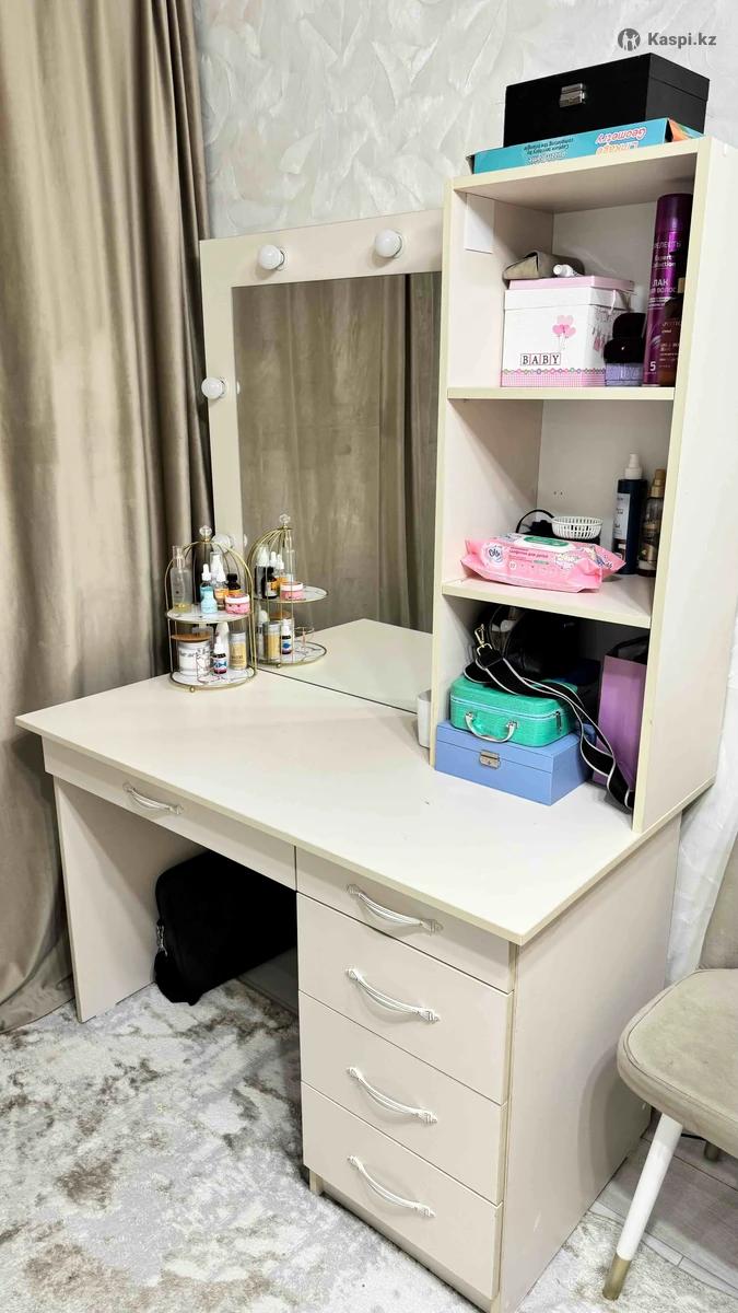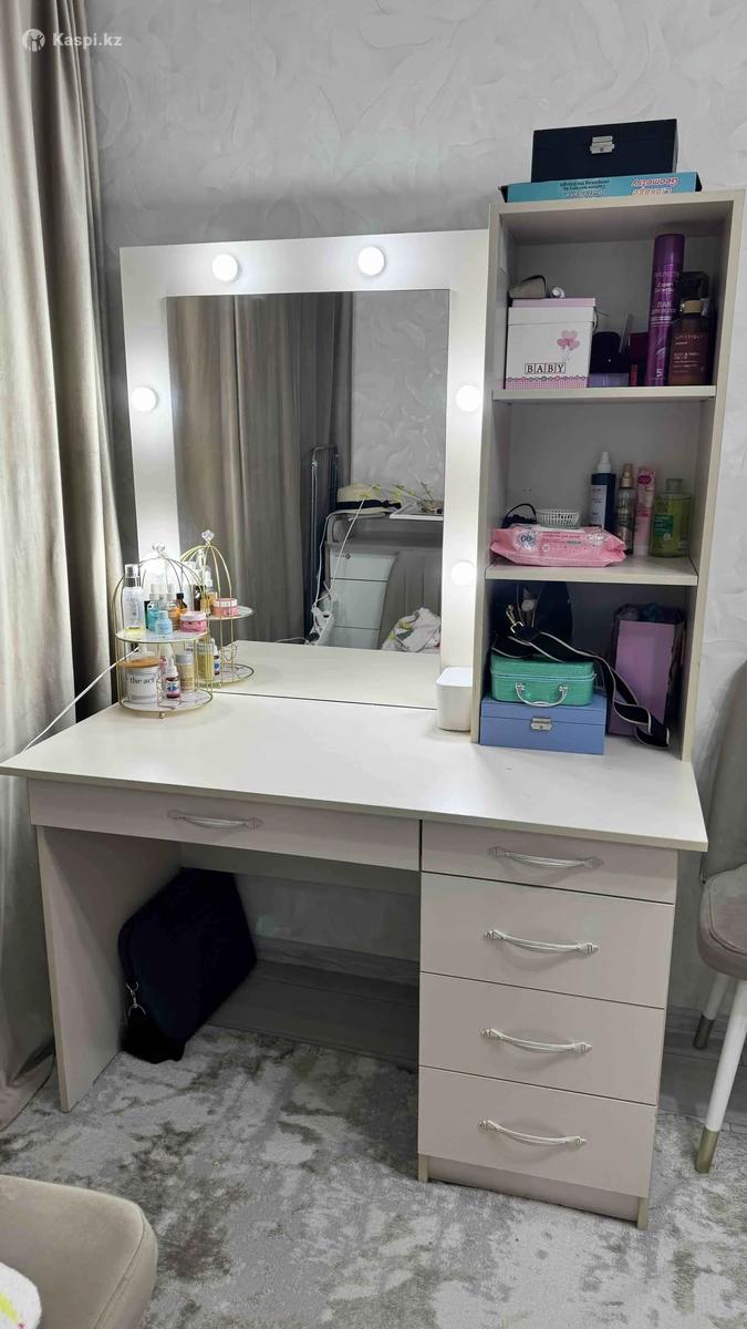 ‼️ СРОЧНО ПРОДАЁТСЯ ТУАЛЕТНЫЙ СТОЛИК ‼️ ✨ Изготовлен на заказ ✨ В отличном состоянии ✨ Очень вместительный — удобные ящики + полки ✨ Идеально подойдёт для косметики и ухода Столик аккуратный, стильный, нежный цвет — отлично впишется в любой интерьер 🤍 💰 Цена: 30 000 тг 📍 Самовывоз Для тех, кто действительно готов забрать — есть торг 😉