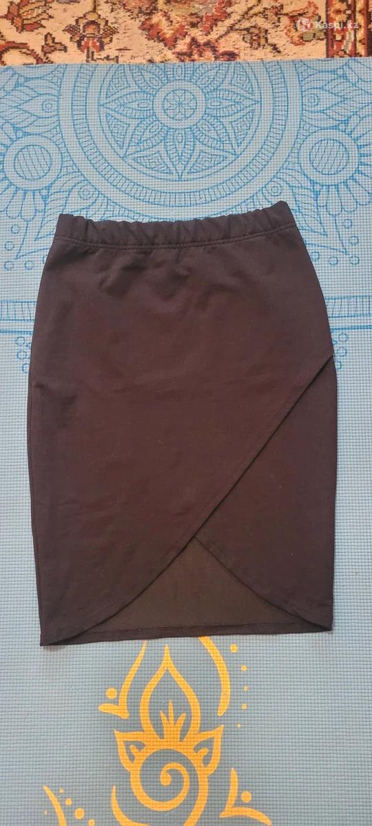 Продаю юбку трикотажную (не сильно растягивается) в отличном состоянии. Спереди эффект запаха. Длина по короткой части - 45 см примерно. Длина сзади - 58 см. Состав - 80% хлопок, 15% полиэстер, лайкра 5%. Производство Россия.
