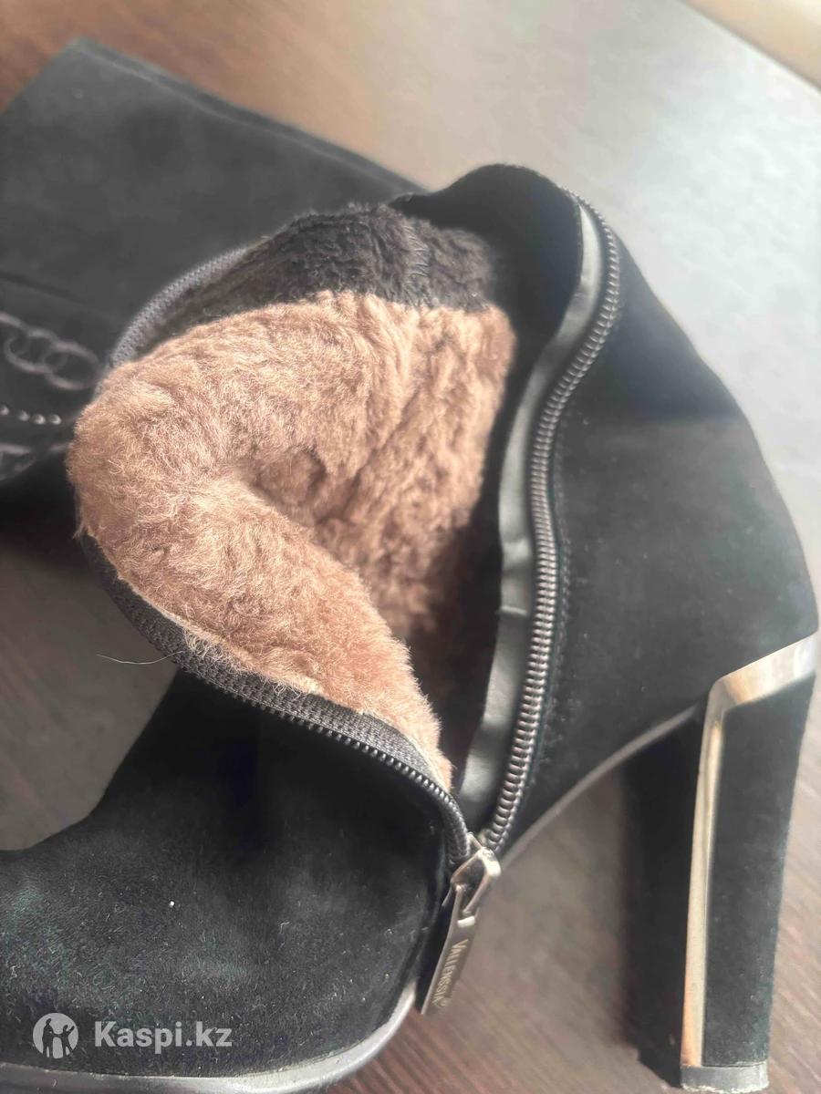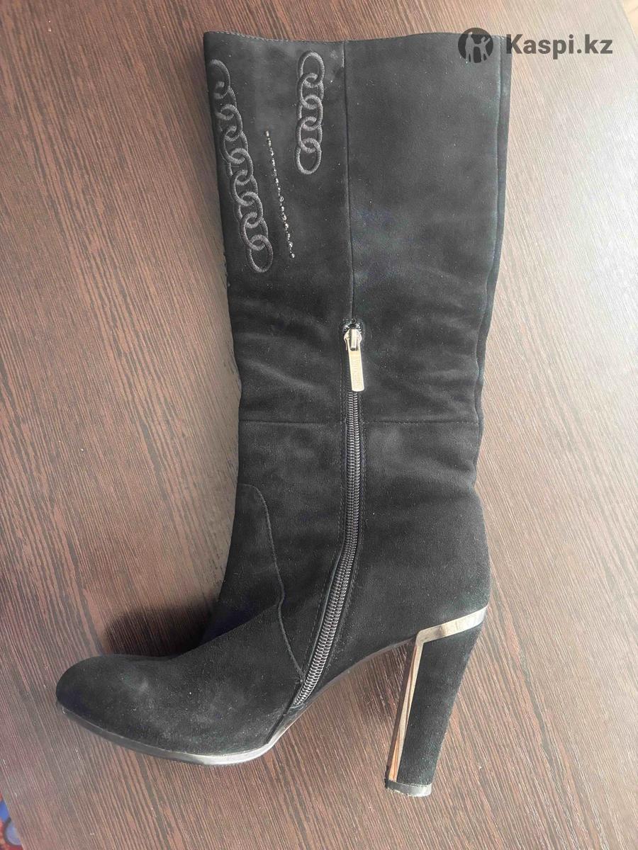 Замшевые сапоги, европейка( для теплой зимы, так как мех идет до половины) натуральная цигейка. Одевала раза 4, даже набойки не меняла все цело. Сапоги в отличном состоянии