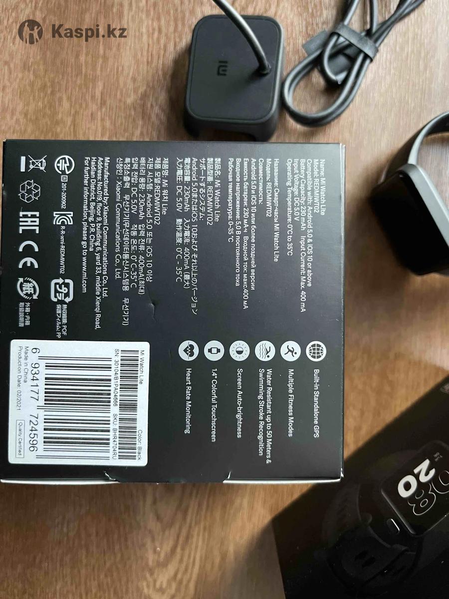 Смарт-часы Mi Watch Lite Модель: REDMIWT02 Цвет: чёрный (термополиуретан) Совместимость: Android 5 и IOS 10 или поздней версии Беспроводное подключение Bluetooth Датчик пульса, акселерометр, гироскоп, электронный компас, датчик атмосферного давления, датчик освещенности Влагостойкость: 5 АТМ Ёмкость батареи: 230 мА.ч Большой выбор циферблатов и многое другое:)