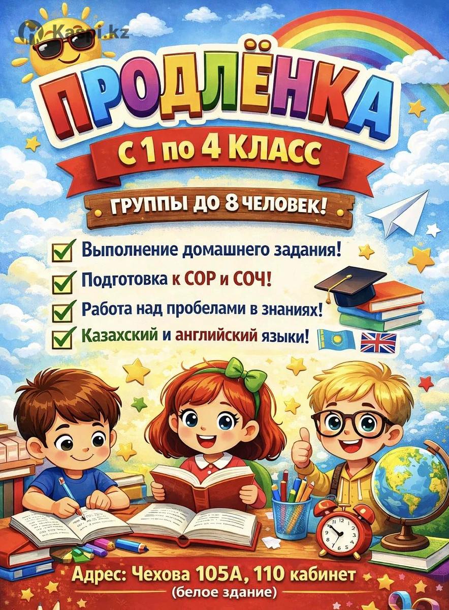 ✔️ Группы до 8 человек — индивидуальный подход ✔️ Выполнение домашнего задания с педагогом ✔️ Подготовка к СОР и СОЧ ✔️ Работа над пробелами в знаниях ✔️ Казахский язык Адрес: Чехова 105 А. Главный вход со стороны дороги. Напротив Школы-лицей №1.