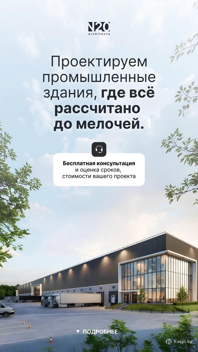 ⚙️ Проектирование производственных объектов | Под ключ и по нормам РК Нужен современный и надежный проект для производства, склада или АЗС? Мы создаем профессиональные архитектурно-планировочные решения, которые работают на эффективность вашего бизнеса. Что входит в проект: ✅ Архитектурная концепция и функциональная планировка ✅ Генплан с оптимизацией движения транспорта и персонала ✅ Конструктивные и инженерные решения ✅ Фасады и 3D-визуализация объекта ✅ Полный комплект документации для строительства и согласований ✅ Соответствие всем требованиям СН РК, СП РК и СанПиН РК Проектируем: 🏭 Заводы и производственные цеха 🏗 Склады и логистические комплексы 🚛 Ангары, автосервисы, АЗС и технические базы Поченьу выбирают нас: 💼 Опыт проектирования промышленных объектов разного масштаба 🧩 Грамотная организация производственных процессов 🕒 Строгое соблюдение сроков и технических заданий 📋 Ответственность, точность и соответствие стандартам РК 📈 Проекты, которые повышают эффективность и снижают издержки 🚀 Доверьте проект профессионалам — мы разработаем объект, который будет приносить прибыль и соответствовать всем требованиям. 📞 Оставьте заявку — получите консультацию архитектора и предварительный расчет проекта бесплатно!