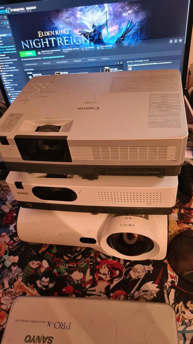 Проекторы разные. Цены от 26тыс до 65тыс. От разных фирм (Canon и т.д) Цена зависит от четкости картинок. В комплекте кабеля питания. Если возьмете несколько есть скидки