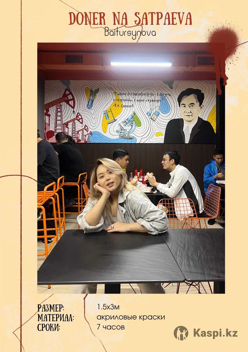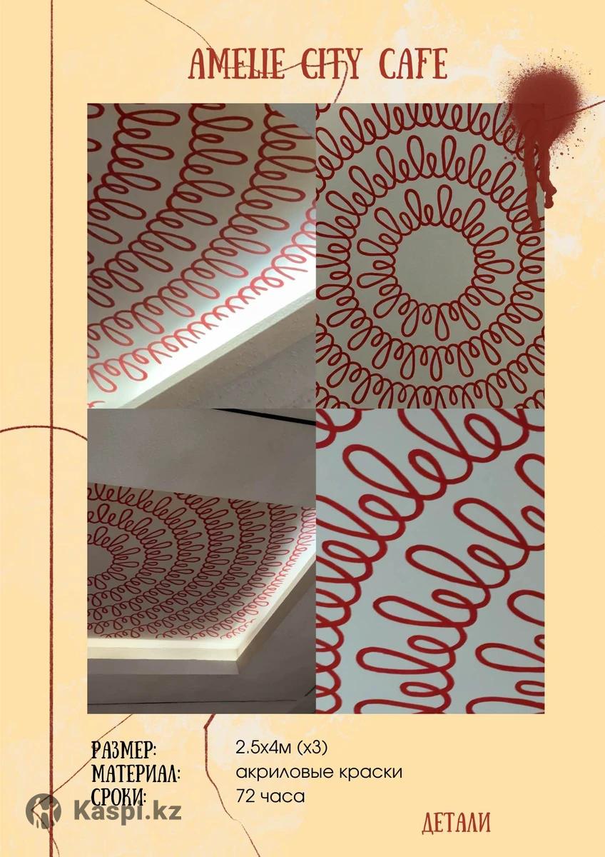 Здравствуйте! Меня зовут Гаухар, я профессиональный художник с 10-летним опытом в интерьерной живописи и декоративных работах. Сделаю для вас качественную и оперативную работу, любой сложности, лучшими материалами Работаю с такими предприятиями как: Coffee boom Coca-cola Invictus fitness Doner na Satpayeva Amelie Вечное небо Bank freedom finance Paul Vilka и многими другими Проконсультирую по любым вопросам Инста