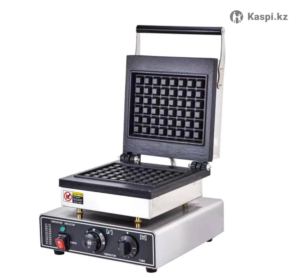 Тип вафель: Бельгийские (толстые, прямоугольные) Материал корпуса: Нержавеющая сталь Материал пластик: Чугун с антипригарным покрытием (тефлон) Количество вафель за раз: 2 шт. (размер примерно 10x10 см каждая) Мощность: Обычно от 1.2 кВт до 2 кВт (в зависимости от конкретной модели) Управление: Раздельный контроль температуры (50-300℃) и таймер для каждой секции