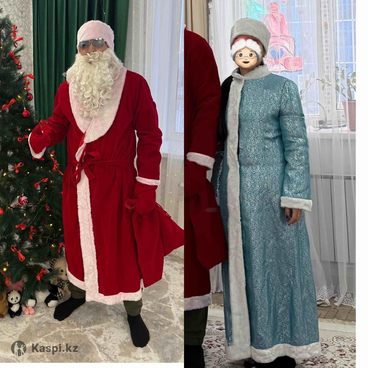 Прокат двух костюмов — 2000 тг. Размер Деда мороза подходит от 48 до 56–58 размера, Размер Снегурочки подходит до 48 размера. По остальным вопросам на
