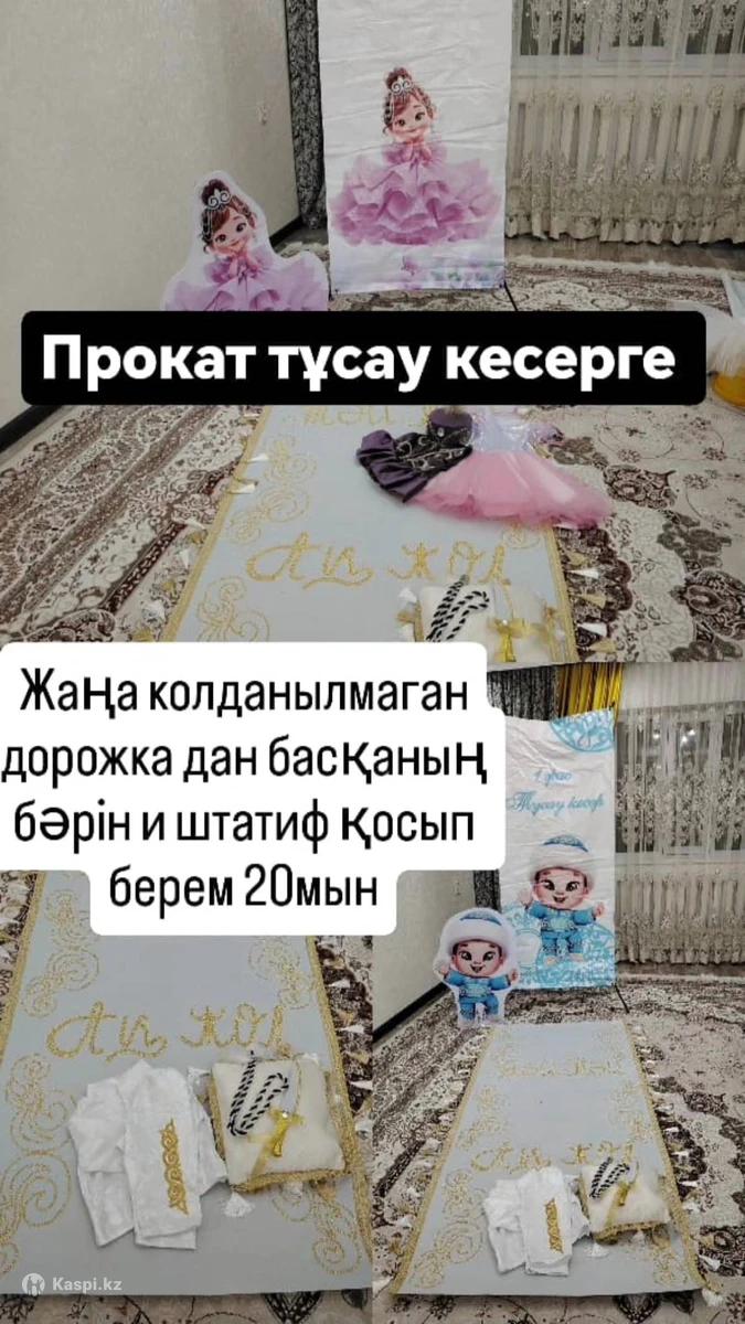 Қызыл гүл койлектер 4шт павлин 7шт ұлдарга 11шт костюм бар и тұсау кесерге арналған керектін бәрі бар ұлға да кызга да дорожка дан басқаның бәрі бар и штатиф қосып берем барлығын 100мынга берем