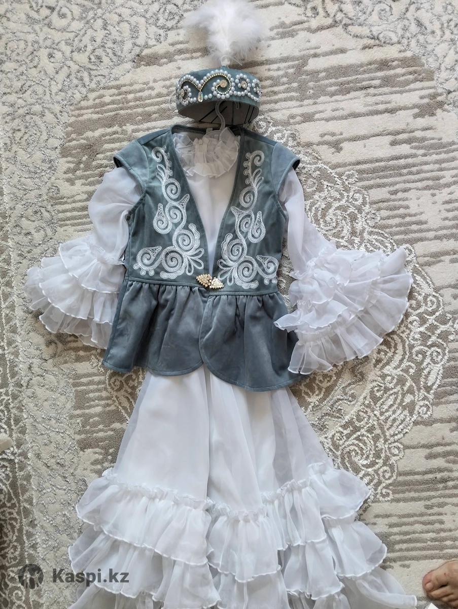 Национальное жалетка, саукеле 2шт. на "Узату", дочка только 1раз одела 44-48р без платья, можно подобрать любое белое платье чтобы носить самим, к нему есть национальное платье+шапочка для девочки 6-8 лет подойдёт, в хорошем состоянии, о цене можно договориться, для девочки платье цена отдельно 5 тысяч.