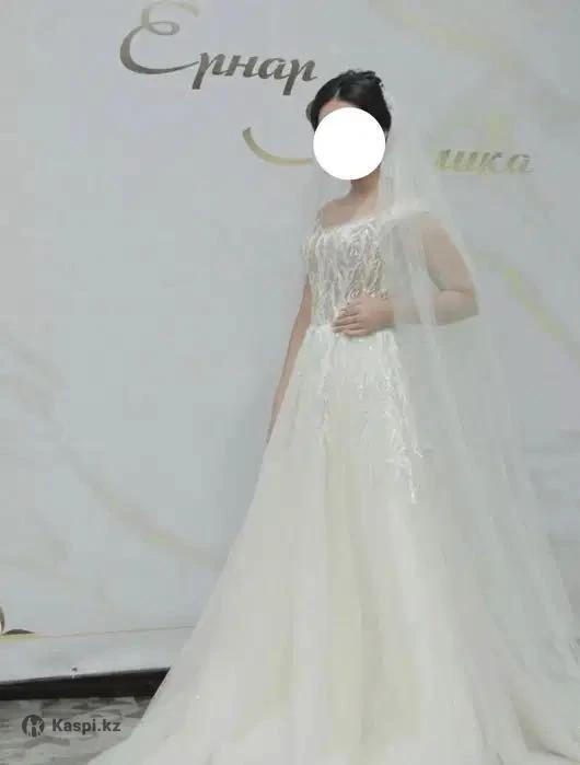 Свадебное платье со шлейфом + длинная фата (White Swan) Можно в рассрочку! Продаю свое счастливое свадебное платье! Покупалось в известном элитном салоне white_swan_wedding в Алматы. Описание: Платье в отличном состоянии, выглядит очень нежно и дорого. Изысканная вышивка, корсет идеально подчеркивает фигуру, создавая утонченный силуэт. Подарок: В комплекте отдам роскошную длинную фату со шлейфом, которая идеально дополняет образ и потрясающе смотрится на фотографиях. Дополнительно: • Цвет: Айвори • Размер: 42-44 • Состояние: Бережное хранение. Примерка возможна. По всем во