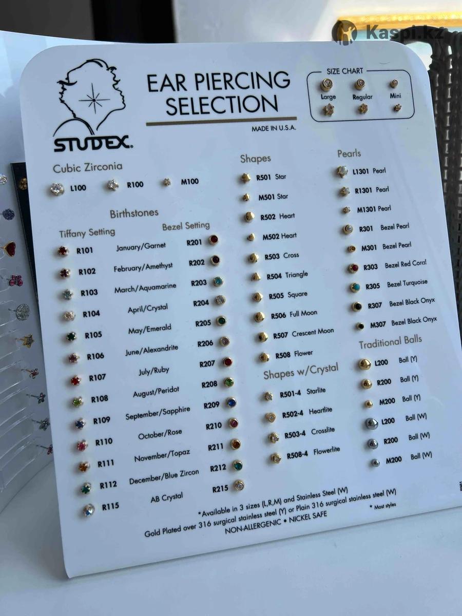 Демонстрационный новый стенд с серьгами Медицинские серьги для прокола ушей Производство США STUDEX