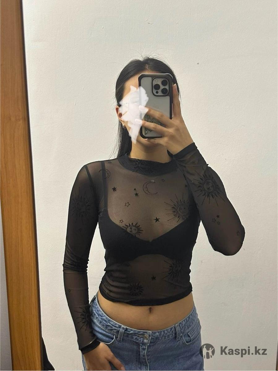 Прозрачная кофточка с рисунками луны,солнца, звезд 2500 тг, топ-футболка H&M 3000 тг почти новая