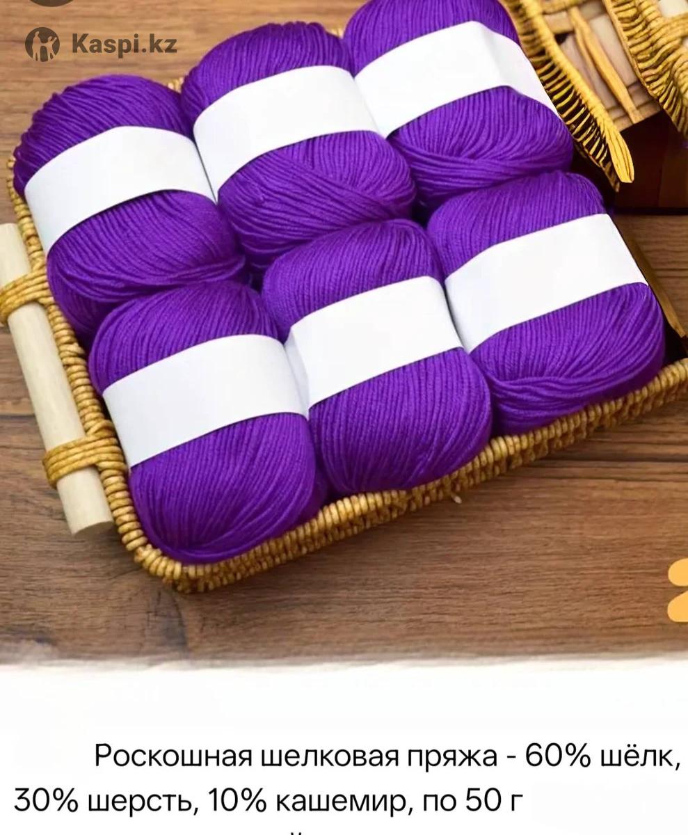 Пряжа кашемир. Нежнейшая, ровная теплая. При поджигании сгорает полностью и пахнет жженой шерстью. Серый и коричневый по два мотка. Один моток по 1000 тг. Мятный цвет смесь 5℅ кашемира, 95℅ меринос. 6 мотков по 4500 тг Лиловый смесь кашемира шелка и шерсти 8 мотков по 4500