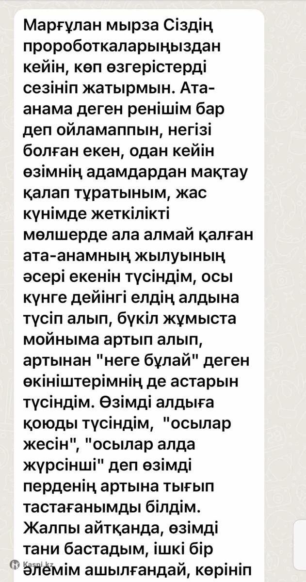 Почему в вашу жизнь снова приходят одинаковые мужчины? Бесплатная диагностика причин. Устали от повторяющихся сценариев? Развод, долги, токсичные отношения, мужчины без ответственности — и все по кругу? Если вы ловите себя на мысли: «Наверное, дело уже во мне», — это не слабость, а первый шаг к свободе. Я — Маргулан Мустафа, гипнотерапевт-регрессолог. Помогу найти ту внутреннюю программу, которая годами притягивала в вашу жизнь боль, а не поддержку. 📌 Что получите бесплатно за 30 минут: • поймем, почему в отношениях повторяется один и тот же тип мужчин • найдем скрытые установки («меня нельзя любить», «я должна спасать», «лучше плохой, чем никакой») • увидим связь между эмоциями, долгами и выбором партнеров • поймете, с чего начать менять этот сценарий Не уговоры, не советы — только честная диагностика. Напишите «СЦЕНАРИЙ» в . Беру ограниченное число заявок.