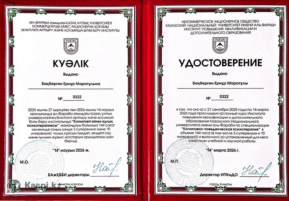Бәрі «барлығы жақсы болады» дейді. Ал саған тек біреудің сені тыңдап, түсінгені керек — кеңессіз, айыптаусыз және «өзің кінәлісің» деген сөздерсіз. Менің атым Ернур, психологпын. Онлайн жұмыс істеймін. Сессияда өзіңді қалай ұстағын келеді, солай ұста — боқтауға, ашулануға немесе неден бастарыңды білмеуге болады. Бәрі арамызда қалады. Мен мына мәселелермен жұмыс істеймін: мазасыздық, істі кейінге қалдыру, сынға ұшыраудан қорқу, жалғыздық және «бірдеңе дұрыс емес, бірақ не екені түсініксіз» деген сезім. Қазақ, орыс, ағылшын тілдері. Бірінші сессия тегін. Одан кейін — 5000 тг./сеанс (50 мин.). Жаз, келісеміз.