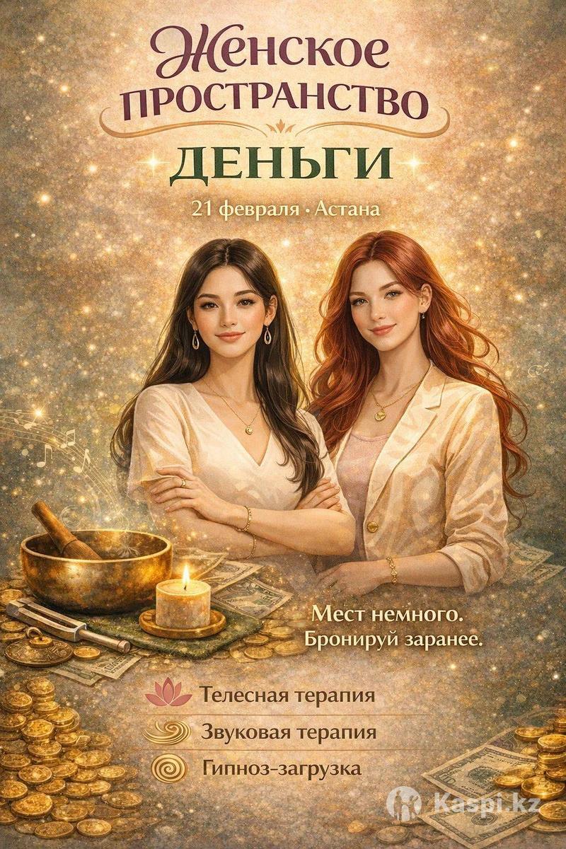 Ваше время сиять: Энергия денег в «Женском пространстве» Вы чувствуете, что достойны большего, но старые сценарии и «стеклянный потолок» не дают двигаться вперед? Настало время сменить борьбу за выживание на состояние изобилия. 21 февраля в Астане мы приглашаем вас на уникальную встречу, где материальный мир встречается с духовной силой. Что вас ждет? Мы подготовили три мощных ключа к вашему новому состоянию: 1)Телесная терапия: Освободим тело от зажимов и блоков, которые мешают пропускать через себя энергию денег и успеха. 2) Звуковая терапия: Вибрации поющих чаш настроят ваш разум на частоту спокойствия и уверенности. 3) Гипноз-загрузка: Прямая работа с подсознанием. Мы уберем ограничивающие убеждения и «прошьем» новые установки на процветание. Результат: Вы выйдете со встречи не просто отдохнувшей, а с четким внутренним разрешением — «Мне можно иметь все, что я пожелаю». Где: г. Астана Когда: 21 февраля Важно: Мест в группе совсем немного, так как мы работаем на качество и глубокое погружение каждой участницы. Не откладывай свою изобильную жизнь на потом. Бронируй место прямо сейчас!