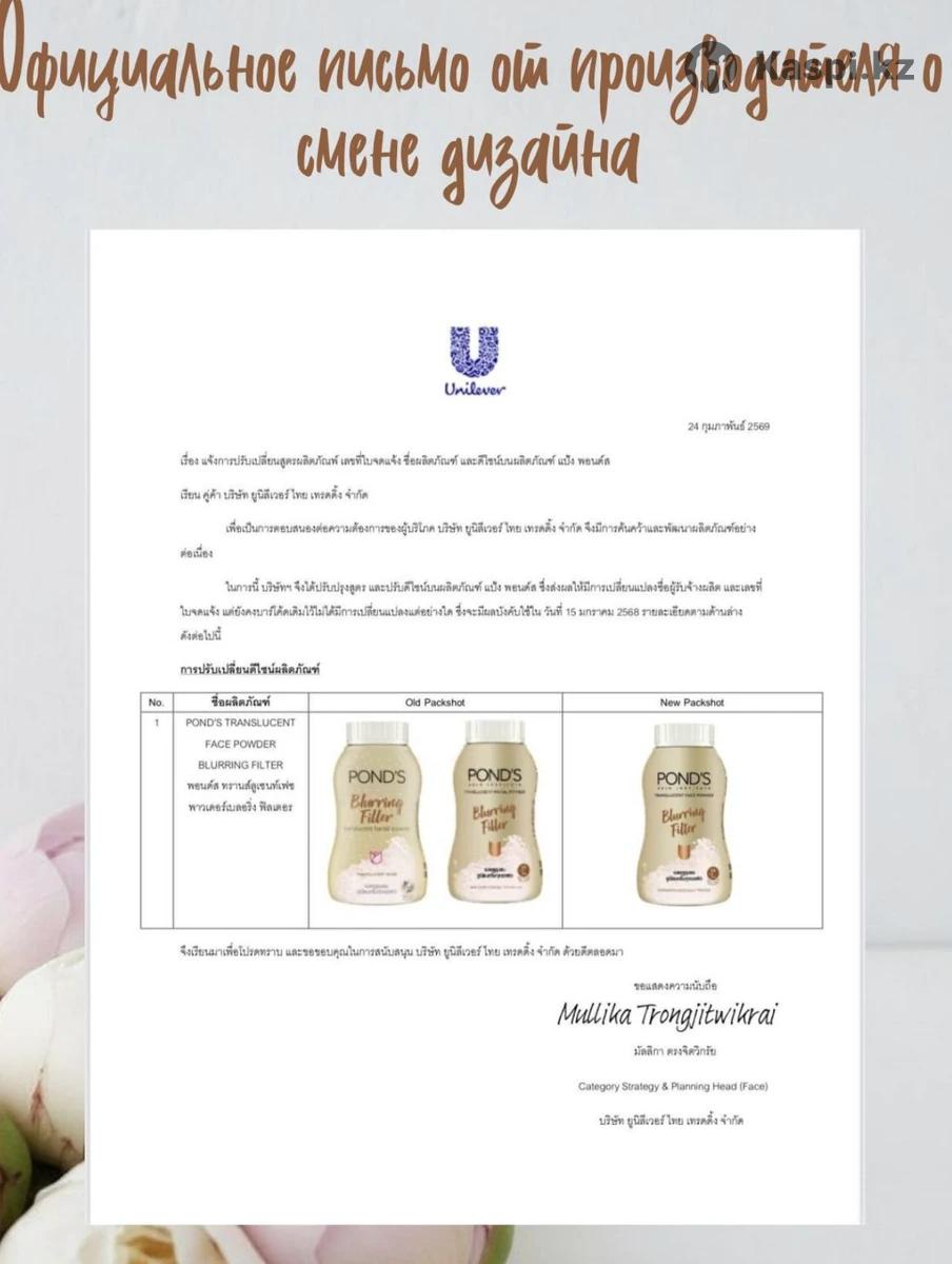 Ponds Blurring Filter — идеальная кожа без фильтров! Эта инновационная тайская пудра Ponds создана, чтобы мгновенно преображать вашу кожу и делать её совершенно гладкой, как на фото. Формула, основанна на технологии «blurring effect», создает на коже эффект фотошопа, визуально размывает неровности, скрывает поры и придаёт матовость без эффекта сухости. Матирующая пудра Ponds Blurring Filter помогает сохранить свежесть макияжа на весь день. Она быстро устраняет жирный блеск, равномерно распределяется по коже и создаёт естественный тон. Её мельчайшие рассыпчатые частицы воздушные и невесомые, благодаря чему покрытие выглядит естественно и комфортно. Пудра Ponds идеально подходит для ежедневного использования — будь то офис, прогулка или вечеринка. Тайская формула содержит компоненты, ухаживающие за кожей: они смягчают, питают и защищают от негативного влияния окружающей среды. Рассыпчатая пудра для лица Ponds Blurring Filter выравнивает текстуру и делает цвет лица более светлым и свежим. Благодаря лёгкому аромату и шелковистой текстуре нанесение превращается в удовольствие. Она не забивает поры и подходит даже для чувствительной кожи. Добавьте эту тайскую пудру Ponds в свой ежедневный ритуал красоты — и вы забудете о фильтрах в камерах. Ваша кожа будет выглядеть совершенно гладко в реальности. Ponds Blurring Filter — ваш секрет естественного сияния и ухода в одном флаконе.