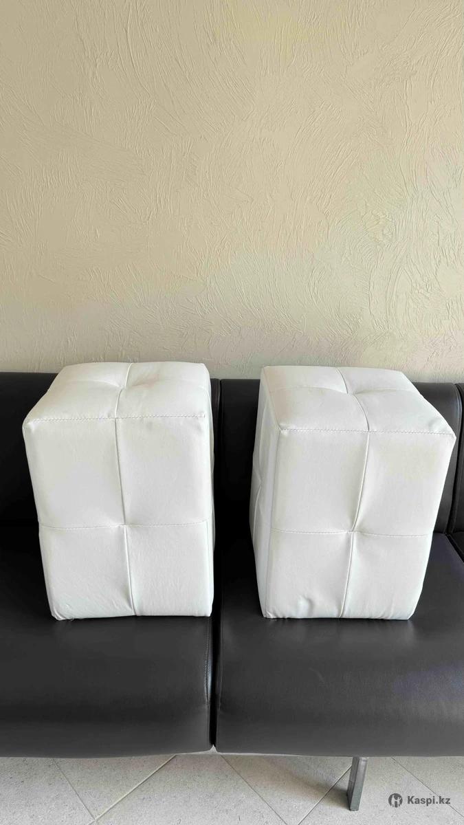 Кожаные пуфики 2 штуки, белого цвета в отличном состоянии. Параметры 35,35,48см.