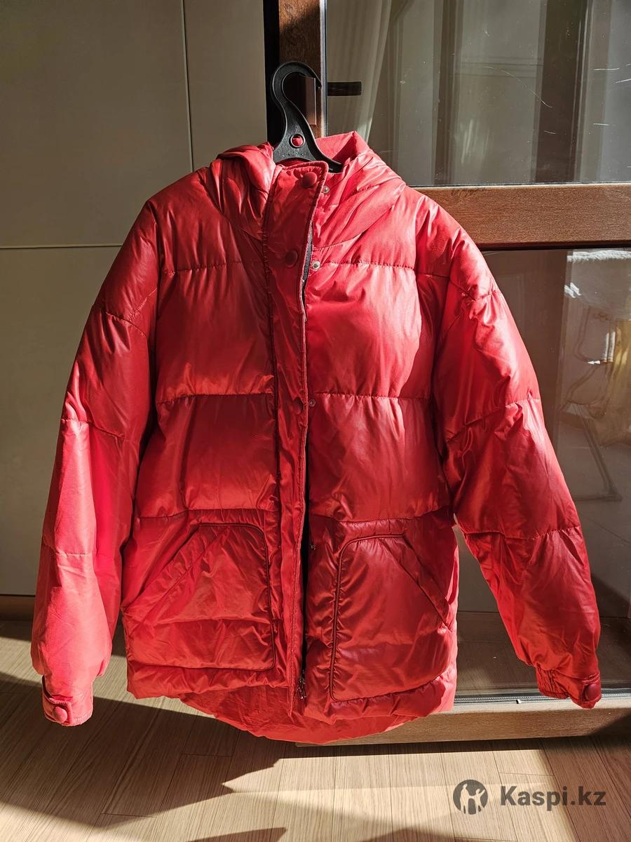 Пуховик женский. Цвет ярко красный. Оверсайз, подойдет до 50 размера. Рукава длинные, модель прикрывает поясницу. Цена символическая