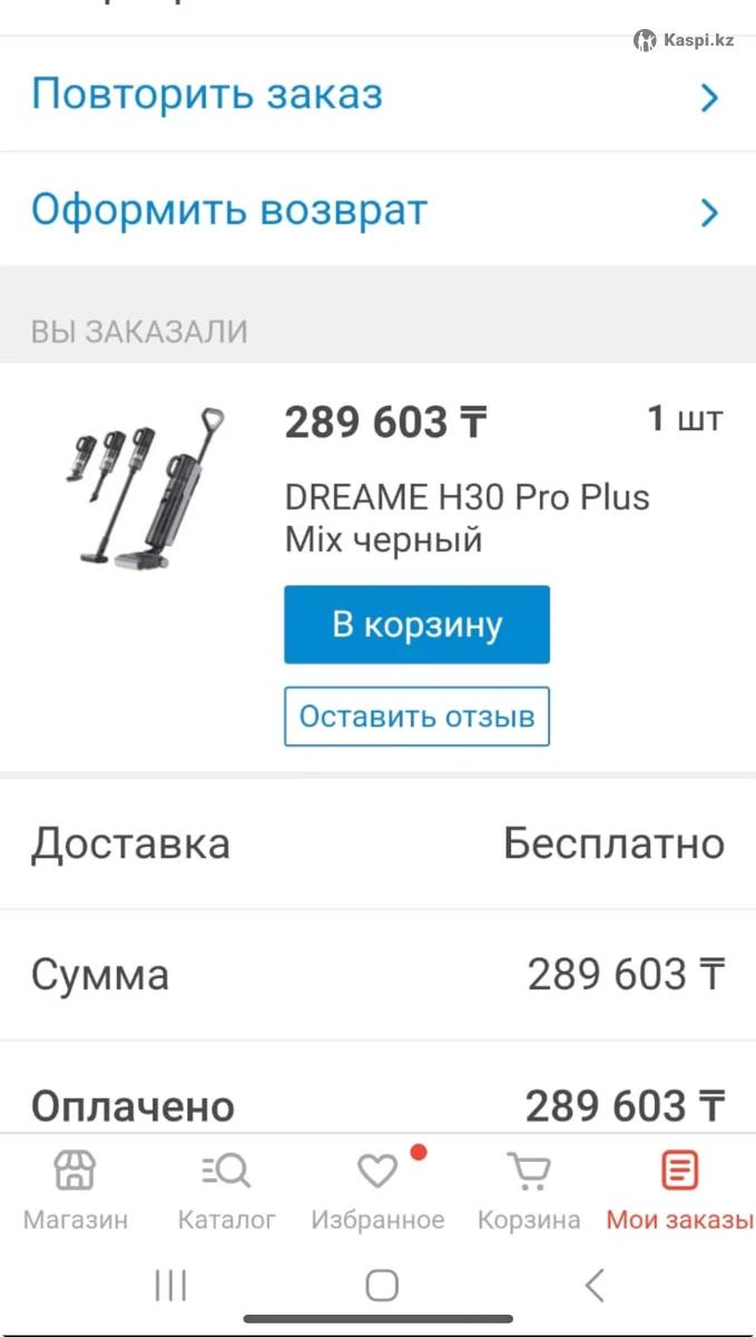 Пылесос DREAME H30 Pro Plus Міх , куплен за 289 000 тенге. Продам за 60 000 тенге. Два в одном, влажная и сухая. Пользовалась 1 месяц максимум . Есть царапины на корпусе, из за кроватей . Когда пылесосила задевала. Коробка все в комплекте, есть детали не использованные даже. Сухой не использовала . Только влажный. Символическая цена.