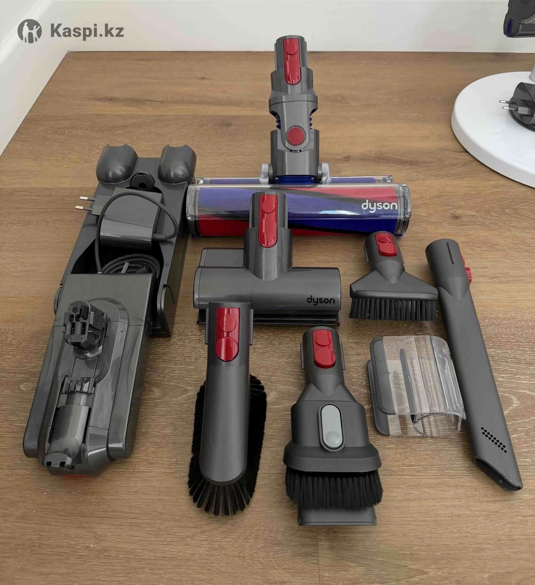 Пылесос рабочий, сломалась насадка длинная, как палка, где белая надпись. На фото видно повреждение. Если найдете рабочую, то будет полностью рабочий. Насадки использовались только 2 вида, остальные новые. В комплекте 2 аккумулятора, стойка и держатель, который можно прикрепить к стене. Коробки нет.