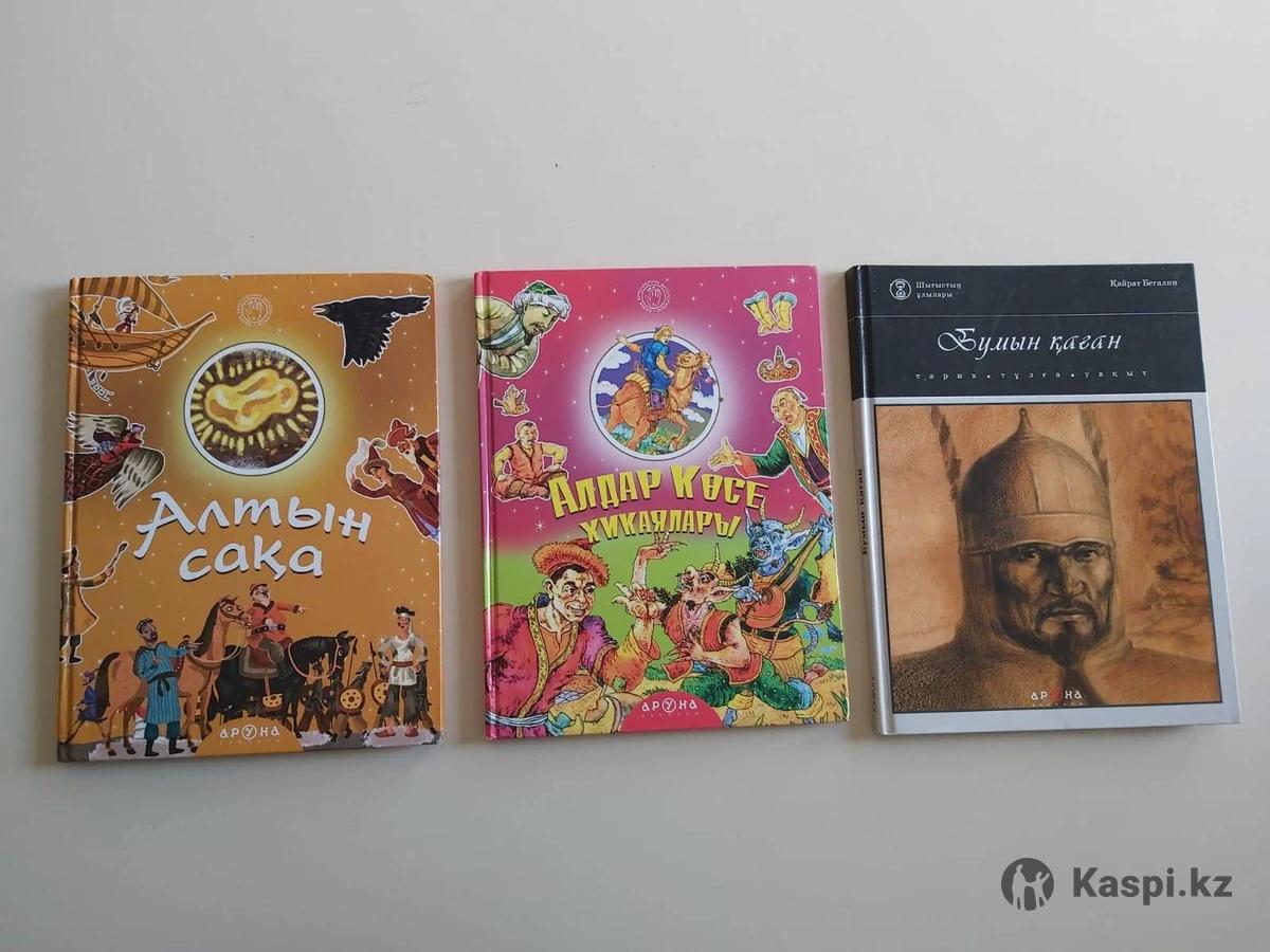 Әртүрлі 3 кітап-энциклопедиялар. 1 кітап = 1000 тг 1) Алтын сақа 2) Алдар көсе хикаялары 3) Бумын қаған Размері: 30×20 см Жағдайы жақсы, жаңа десе де болады.
