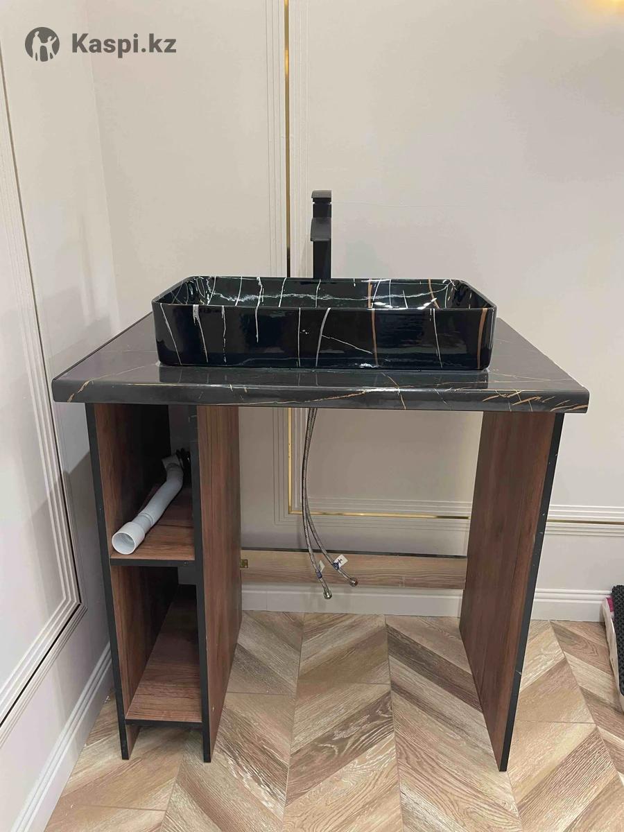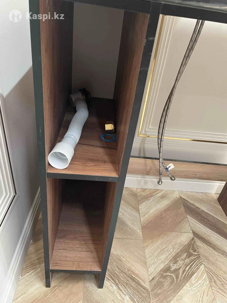 Продается новый ванный гарнитур, тумба с умывальной зоной и смесителем. Не пользовались, причина продажи-не подошел по размеру. Размер тумбы Ширина 87,5 Глубина 60 Высота 93 Размер мойки 61/35 Кран черный, матовый.