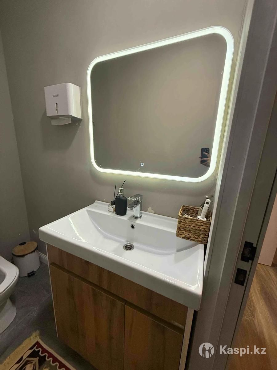 Продаем раковину с тумбой (размер: 76,5 на 78) Зеркало с подсветкой (размер: 76,5 на 78) Такой же комплект есть в другом санузле, он тоже продается. Можем рассмотреть продажу товаров по отдельности (диспенсер для салфеток в подарок) Также продается унитаз