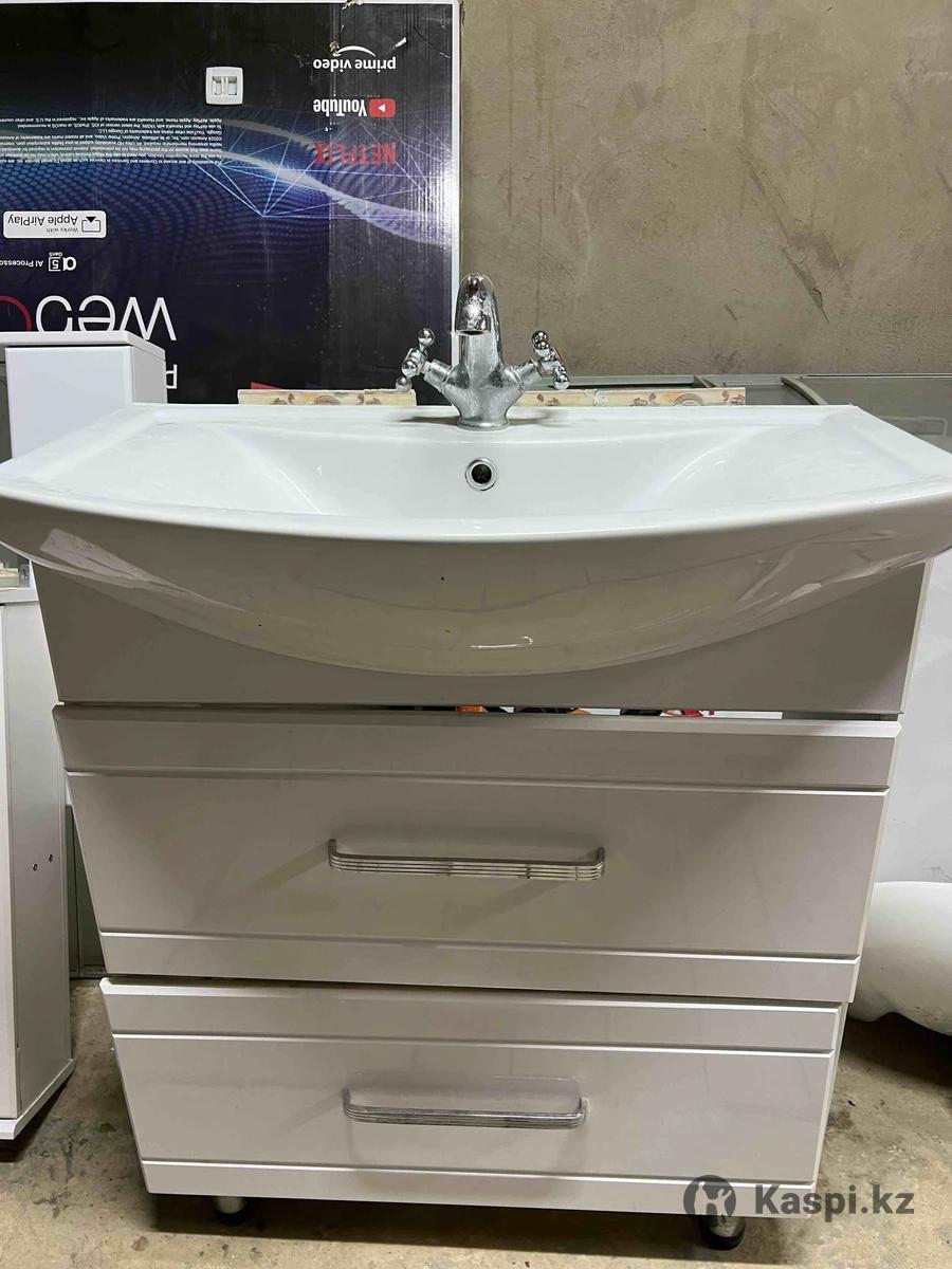Раковина с тумбой зеркало в месте в хорошем состоянии смеситель все есть пишите звоните в любое время