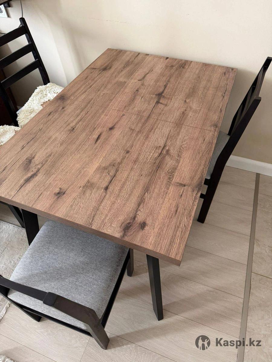 Продаётся раскладной обеденный стол вместе с 4 стульями. Мебель досталась от предыдущих хозяев после покупки квартиры. Размеры стола в сложенном виде: 120×80 см Высота: 75 см Стол раскладывается (увеличивается в длину). Размер в разложенном виде уточню позже. Состояние отличное, всё чистое, аккуратное, без повреждений. Стулья крепкие, ничего не шатается. Самовывоз. Возможен небольшой торг.