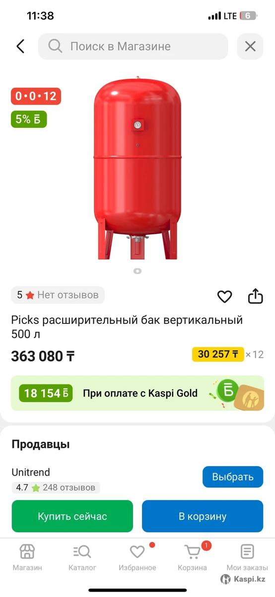 Продам расширительный бак 500 литров В наличии 2шт. Макс. давление: 10 Бар Состояние: Новое