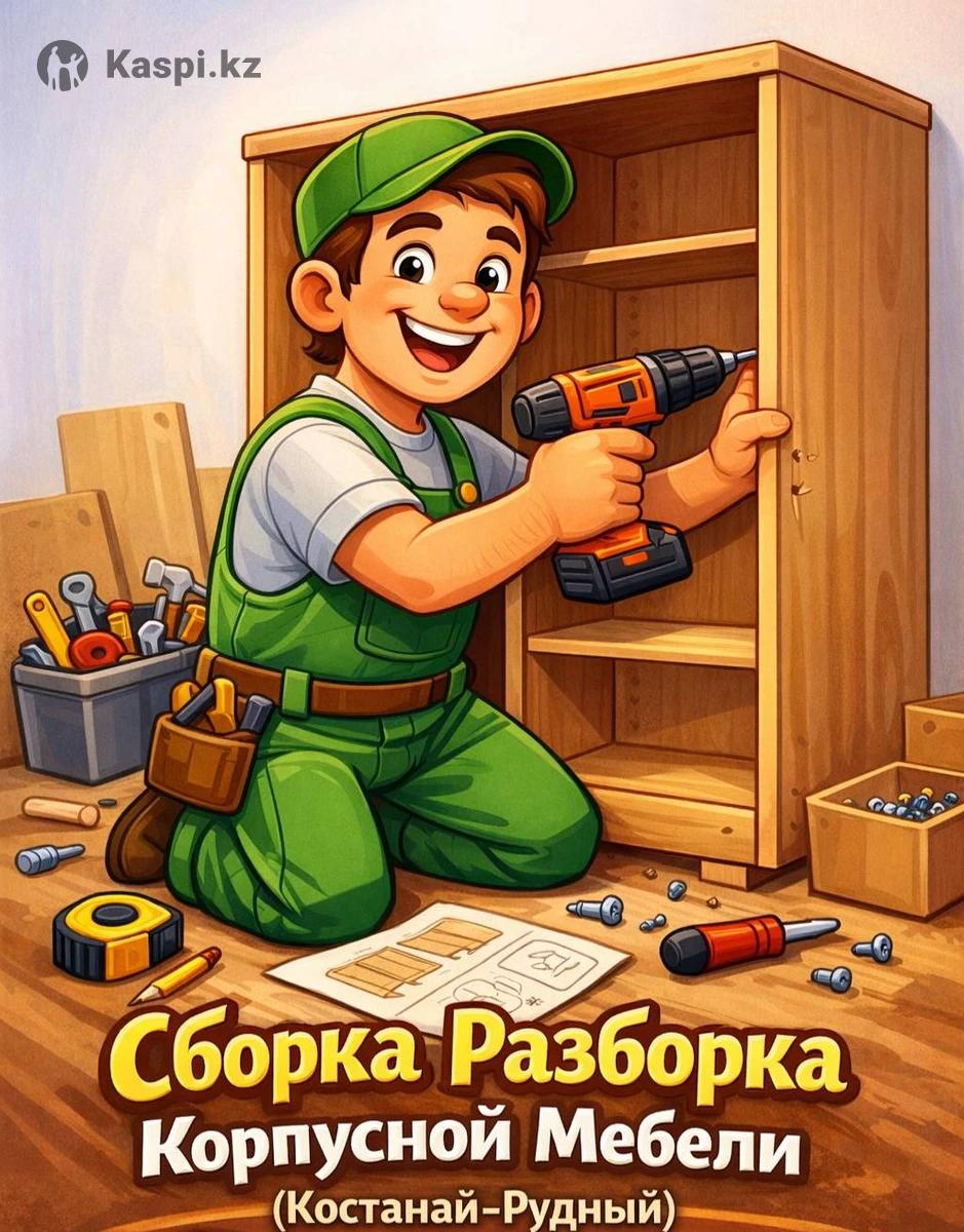 Сборка и разборка корпусной мебели Профессионально и аккуратно выполню сборку и разборку корпусной мебели: шкафы, кровати, комоды, кухни, стенки и другая мебель. Работаю со своим инструментом Возможен выезд на дом Доступные и честные цены Быстро, качественно и надежно Подходит при переезде, покупке новой мебели или ремонте. Отношусь к работе ответственно, без повреждений и лишних проблем. Работаю по костанаю , так же в рудном