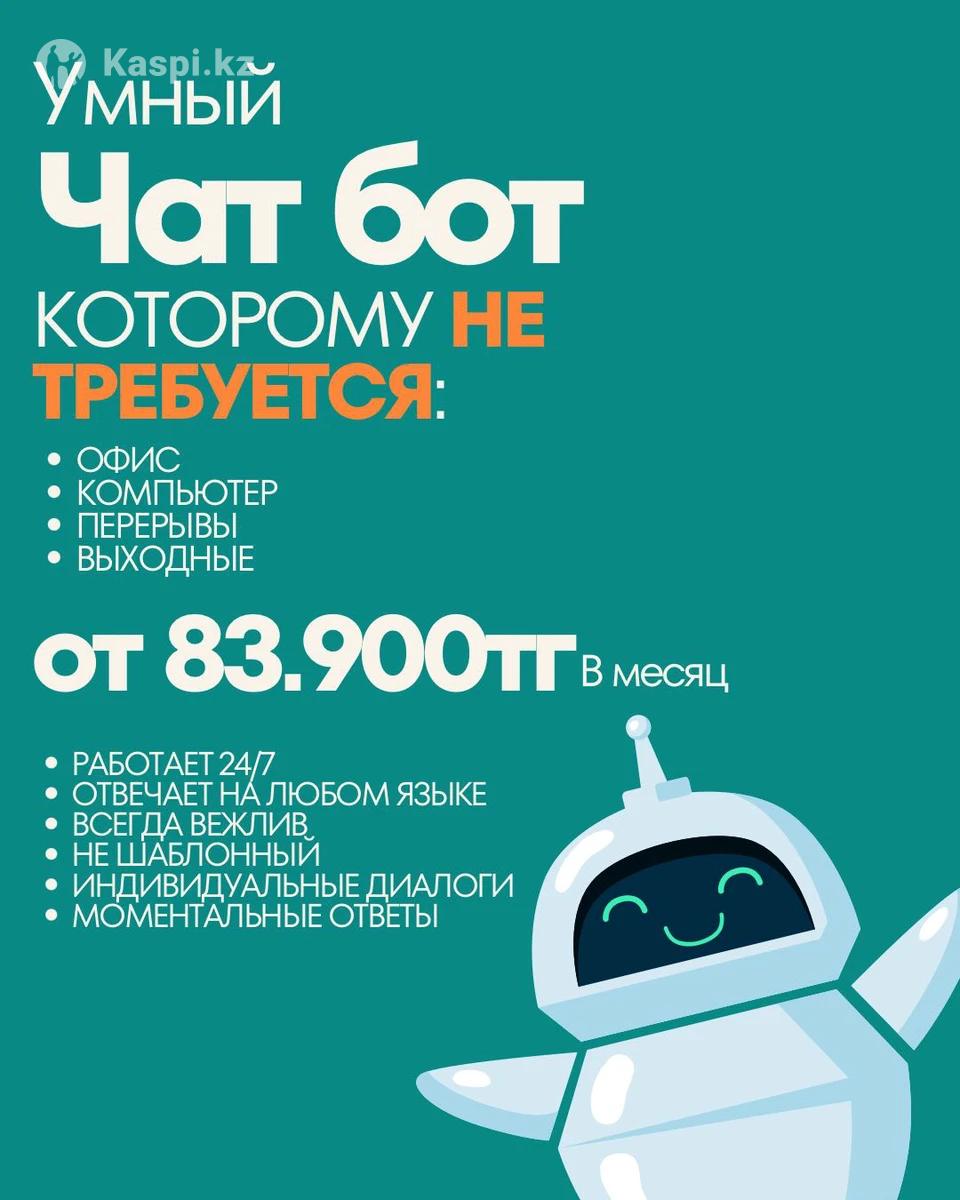 Создаем умных AI-ботов для мессенджеров, которые: — отвечают не по шаблонам, а живым, осмысленным текстом — ведут диалог на любом языке — работают 24/7 без выходных — отвечают мгновенно, без очередей и задержек — всегда вежливые и корректные — обрабатывают заявки и прогревают клиента Ваш менеджер может спать. Бот — нет. ⏳ Срок разработки — до 8 дней 💰 Стоимость — от 83 900 тенге в месяц Подходит для: — интернет-магазинов — экспертов — услуги — франшиз — онлайн-школ — любого бизнеса, где важна скорость ответа