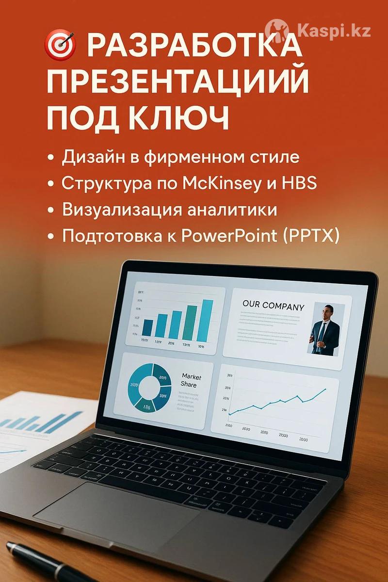 🎯 Разработка продающих и инвестиционных презентаций под ключ Мы создаем профессиональные презентации, которые привлекают внимание, убеждают инвесторов и продают ваши идеи. 💡 Что вы получаете: - Дизайн в фирменном стиле компании или под тематику проекта; - Логичную структуру по методикам McKinsey и Harvard Business School; - Копирайтинг с фокусом на ценностное предложение и преимущества; - Визуализацию аналитики, инфографику, графики и схемы; - Подготовку финальной версии для PowerPoint (PPTX), PDF и Pitch Deck форматов. 🎨 Мы создаем: - Презентации для инвесторов и грантов (в т.ч. Astana Hub, ЕБРР, Digital Europe); - Продажные и маркетинговые презентации; - Образовательные и научные презентации (включая оформление по IEEE, Springer, Horizon Europe и др.); - Корпоративные презентации и годовые отчеты. 🚀 Поченьу выбирают нас: - Используем передовые инструменты для дизайна и сторителлинга; - Готовим тексты на казахском, русском и английском языках; - Соблюдаем требования международных грантов и фондов; - Работаем быстро, профессионально и с гарантией результата. 💬 Результат: Презентация, которая убеждает, впечатляет и продает.