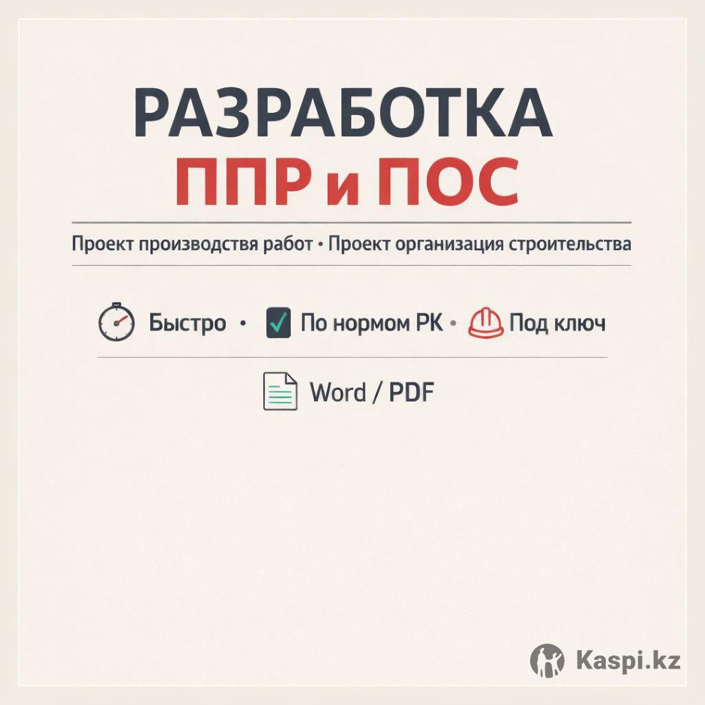 Разработка проектов ППР в Астане,Караганда,павлодар,Кокшетау и другие города Казахстана,работаем дистанционно.Быстро,недорого,качественно