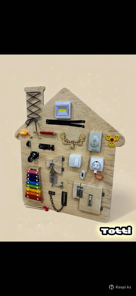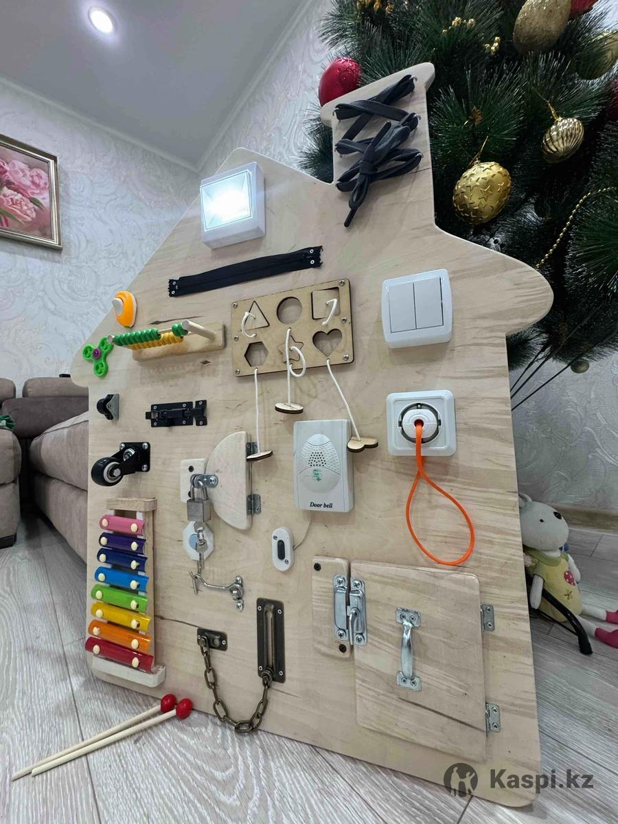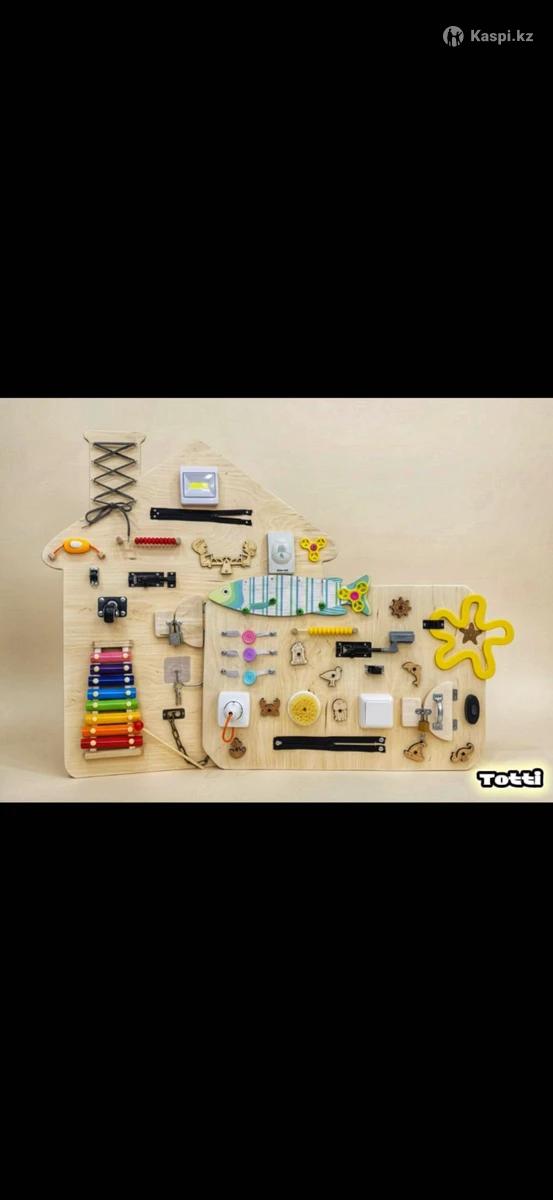 Бизиборды для детей 1 года и старше Предлагаем развивающие доски (Бизиборды) для детей от 1 года, которые помогают в комплексном развитии. Размеры: •Большой: 72×70 см цена 35000 •Малый: 60×40 см цена 25000 - ЕСЛИ БРАТЬ ВМЕСТЕ ТО СКИДКА 50 000 Особенности и элементы: •Мелкая моторика: шестеренки, замки, молнии, кнопки •Сенсорное развитие: различные текстуры, световые элементы и светильники •Звуковое развитие: звонки, кнопки с эффектами •Логическое мышление и внимание через интерактивные элементы Материалы и безопасность: •Экологически чистая древесина •Без острых углов и токсичных покрытий •Надежная сборка, устойчивая к активным играм Для кого: •Дети от 1 года до 6 лет •Подходит для дома, детских садов и игровых комнат