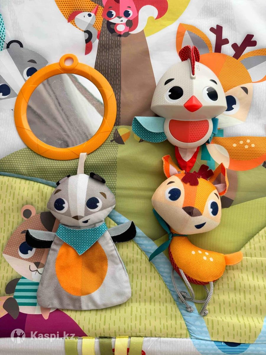Развивающий игровой коврик для малышей в идеальном состоянии. Очень красивый и функциональный игровой коврик, который надолго увлечет малыша и поможет в развитии с первых месяцев жизни. В комплекте: — 4 подвесные игрушки — безопасное зеркальце (игрушки можно использовать отдельно) — электронная игрушка-птичка со свето-музыкальными эффектами • до 30 минут музыки • 20 различных мелодий • можно использовать как отдельный подвес На самом коврике: — разные фактуры — ленточки — шуршащие элементы — все для развития моторики, слуха и внимания Размер коврика: 80 × 60 см. Состояние — идеальное, аккуратно использовался. Сейчас в продаже от 61 000 тенге, отличная возможность купить почти новый коврик по выгодной цене. Подойдет как для своего малыша, так и в подарок.