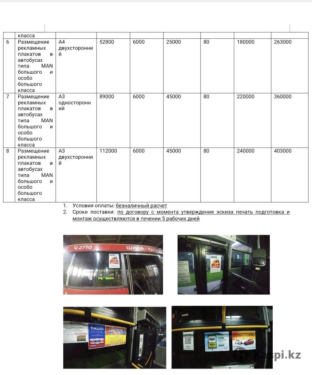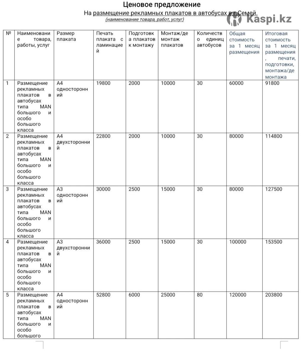 Реклама внутри автобусов в городе Семей, более 30 маршрутов. В месяц аренда 60 000 тг. Формат А4, цветной.