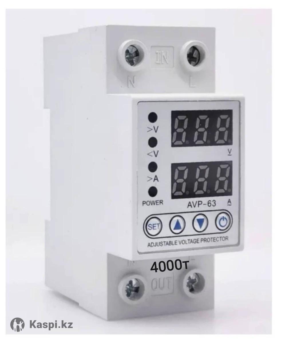 однофазное реле напряжения и тока AVP-63, предназначенное для защиты бытовой электроники от перепадов напряжения и перегрузок по току. Модель: AVP-63 Номинальный ток: 63 А Функционал: Регулируемые пороги напряжения (обычно от 140 до 300 В) и тока (1-63 А) Экран: Двойной дисплей для отображения текущего напряжения и тока нагрузки