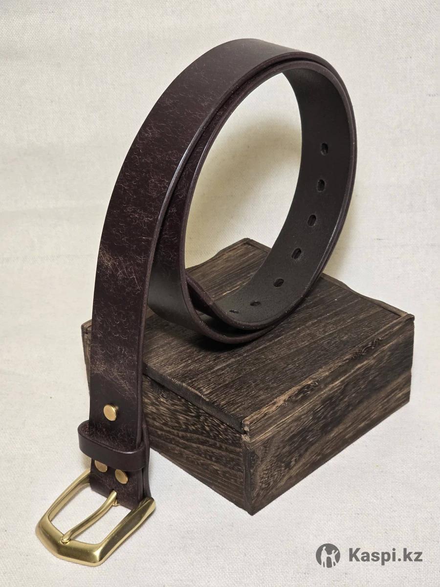 Ремень ручной работы из натуральной кожи Пряжка: латунь Цвет: шоколад Кожа: КРС, растительное дубление Ширина: 40мм Размер: 105-110см длина измеряется от середины пряжки до среднего отверстия ремня Очень плотная кожа с неповторимым рисунком! Это изделие станет отличным подарком для любого мужчины!