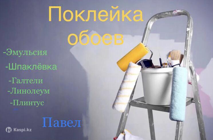 Обои, эмульсия, галтели, шпаклевка, плинтус, линолеум.