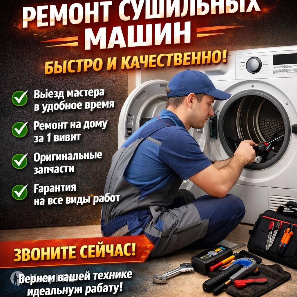 РЕМОНТ СУШИЛЬНЫХ МАШИН Быстро • Качественно • С гарантией ✔ Выезд на дом ✔ Диагностика и ремонт ✔ Не сушит / не греет ✔ Шумит / не крутит барабан ✔ Ошибки на дисплее Работаем с любыми брендами Опыт более 10 лет 📞
