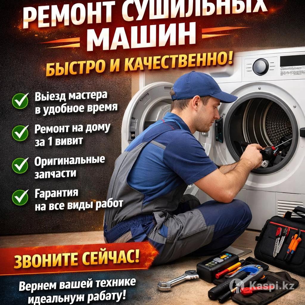 РЕМОНТ СУШИЛЬНЫХ МАШИН Быстро • Качественно • С гарантией ✔ Выезд на дом ✔ Диагностика и ремонт ✔ Не сушит / не греет ✔ Шумит / не крутит барабан ✔ Ошибки на дисплее Работаем с любыми брендами Опыт более 10 лет 📞