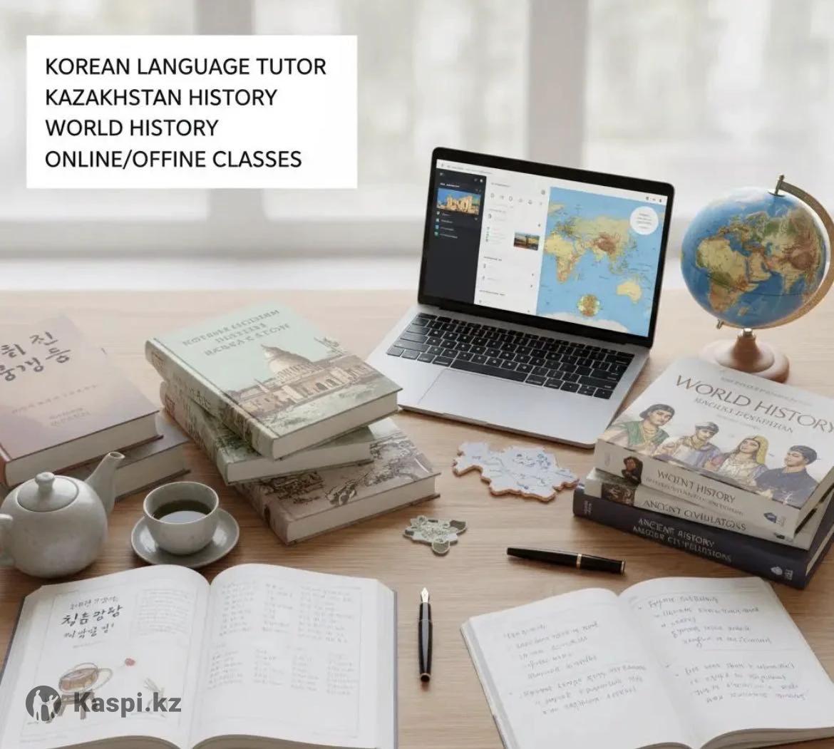 Репетитор по корейскому языку и истории! — Корейский язык с нуля (есть сертификат подтверждающий уровень) — История Казахстана и Всемирная история — Подготовка к ЕНТ (9–11 классы) — Помощь с домашними заданиями и разбор сложных тем Язык обучения — по выбору ученика: русский / казахский