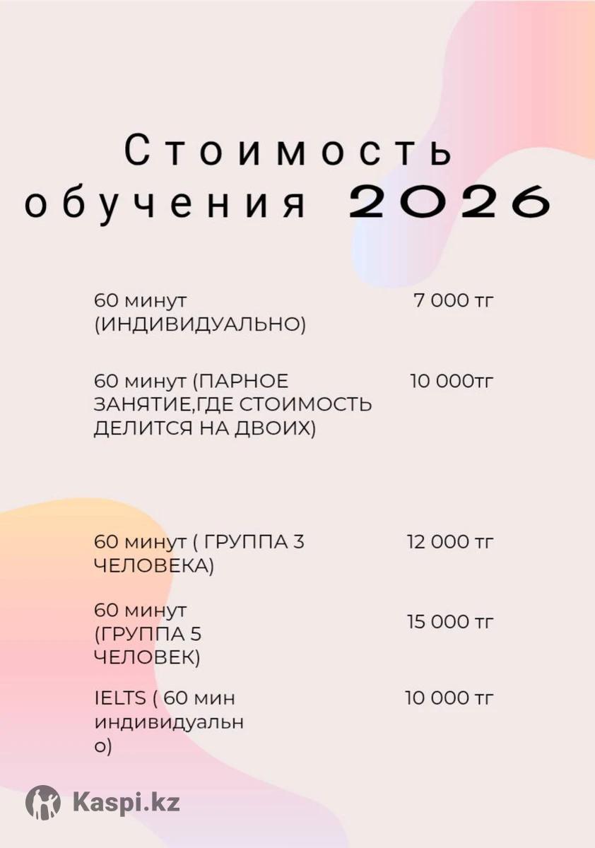 Общий английский (онлайн) Возраст: от 13 лет Языковые курсы с репетитором для учебы,работы и путешествий. Приоритетно обучаю разговорному англ из повседневной жизни носителей. Занятия проводятся по 60 минут на платформах Teams и Google Meet. Все материалы ( пдф учебники, интернет ресурсы) предоставляет учитель. Актуальная стоимость обучения (онлайн) на 2026 год указана на фото. Для уточнения пишите по указанному номеру. Обо мне: - Сертификат Celta,2013 г, (Обучение в Англии: Борнмут, ITTC) - выезд и сопровождение детских групп в качестве групплидера (Оксфорд, Истборн) - Диплом гос.образца (учитель)