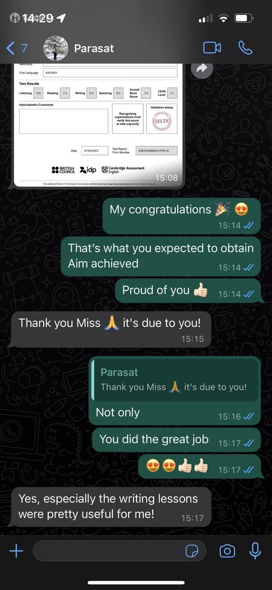 Работаю в сфере преподавания уже более 5 лет Имею опыт в преподавании как онлайн, так и оффлайн. ГОТОВЛЮ К IELTS (знаю все ключевые моменты так как сама раньше обучалась у экзаменатора British Council, составляющего вопросы к IELTS) и обучаю английскому для души Окончила НИШ ХБН и на данный момент учусь заграницей Опыт работы в сфере английского -полгода в образовательном центре "Ziyatkz" -2 года в "INAstudy" -3 месяца в BilimWay -4 месяца в академии Abay Опыт работы в сфере турецкого -переводчик с турецкого на английский (6 месяцев) -постоянное общение с носителями языка -преподавание - 1 год На данный момент занятия проходят в режиме ОНЛАЙН Пробное занятие БЕСПЛАТНОЕ (15-20 минут)