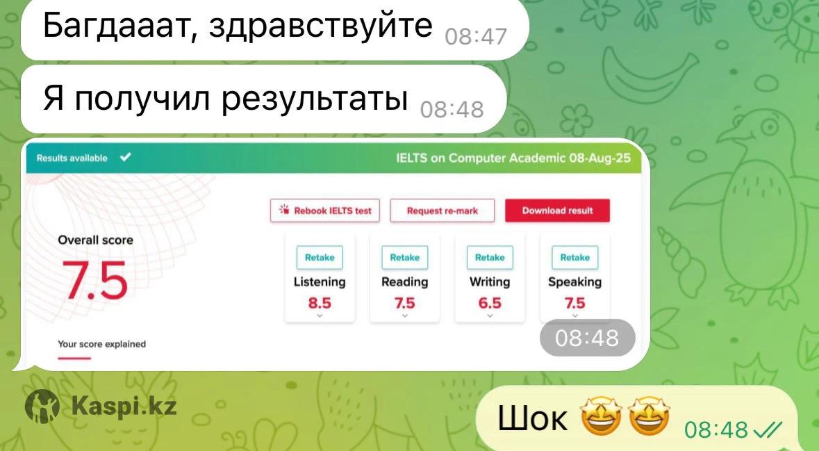 Меня зовут Багдат. На данный момент являюсь студентом Nazarbayev University. Обучаю людей английскому языку и готовлю к IELTS более пяти лет. Помог более 80 человек начать говорить на Английском свободно, также помог с нуля поступить в США 10 студентам (Boston, UMass etc.) Обучаю по своей авторской методике, благодаря которому выучил английский когда-то сам и сдал IELTS на 7.5 в 16 лет. Жил в заграницей 4 года, включая 6 месяцев в США. Предлагаю: Выбрать время и обсудить вашу ситуацию, где вы расскажете о вашем уровне (или вашего ребенка), что у вас есть и к чему хотите прийти. Я расскажу что я сделал бы оказавшись на вашем месте, чтобы достичь поставленной цели. Если сойдемся по ценностям и я увижу что я могу ускорить ваш путь, то приступим к обучению. Взрослые и дети. Занятия проходят онлайн на платформе Google meets. Пробный урок бесплатный. За подробностями пишите на .