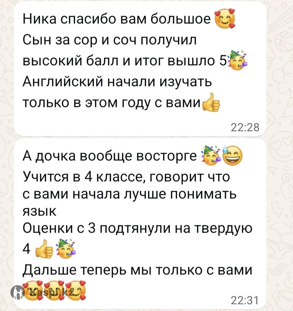 👩🦰🧒Работаю с детьми и взрослыми в online и offline режимах. 🏫Имею опыт работы (более 5 лет) в общеобразовательной школе , в гимназии и в частных образовательных центрах и . ✅️Готовлю к sor/соч. 📚Помогаю делать домашнее задание. 🗣На уроках много разговорной практики. 🎉Будем играть в разные игры, смотреть фильмы, слушать музыку. 🎓Имею степень бакалавра и магистра. 🌸1 урок-60 мин 👍🏽Присоединяйся!