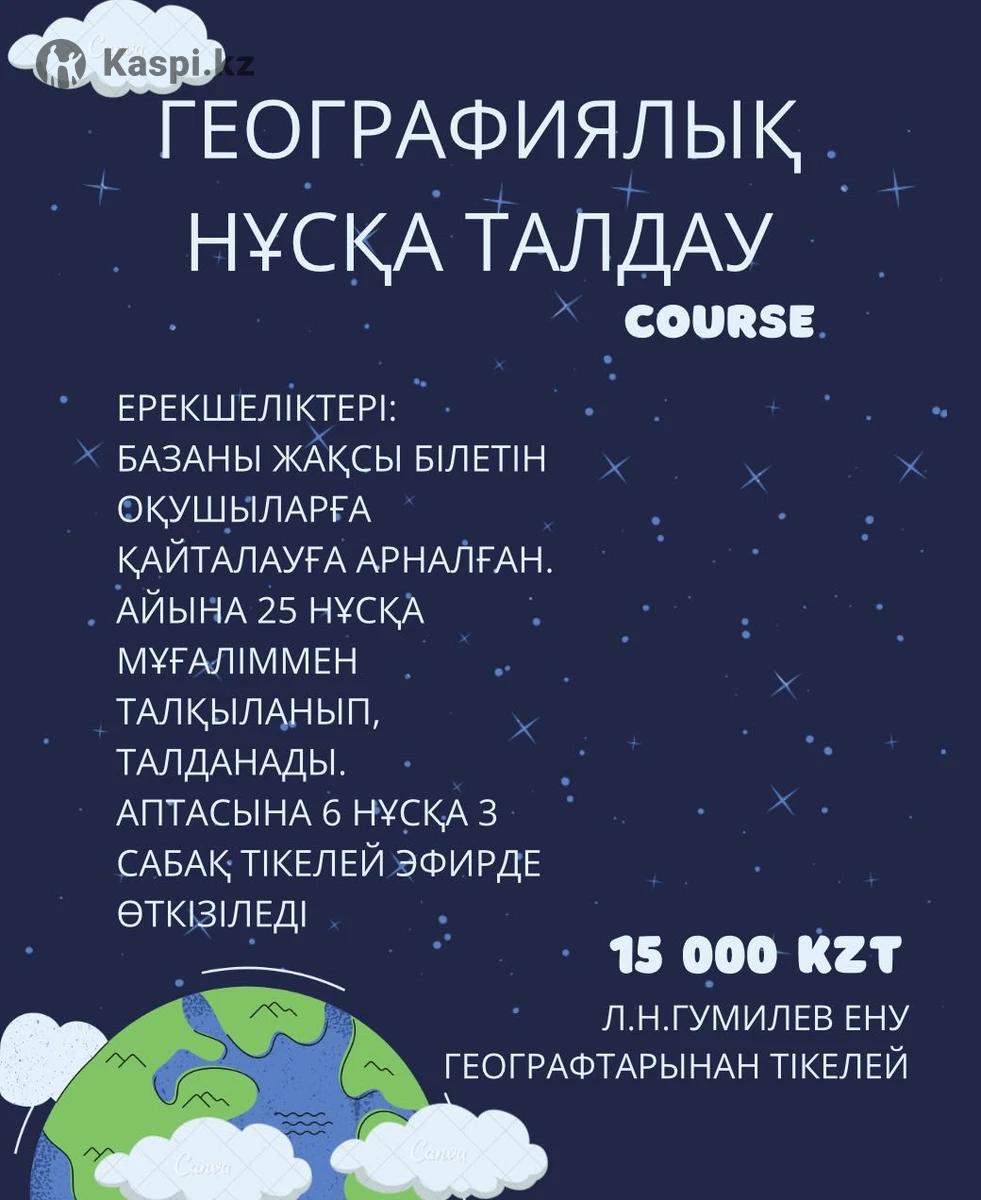 Образование Л.Н.Гумилев ЕНУ «Факультет естественных наук», «География педагогика» Бакалавр’2027 Писать на : +